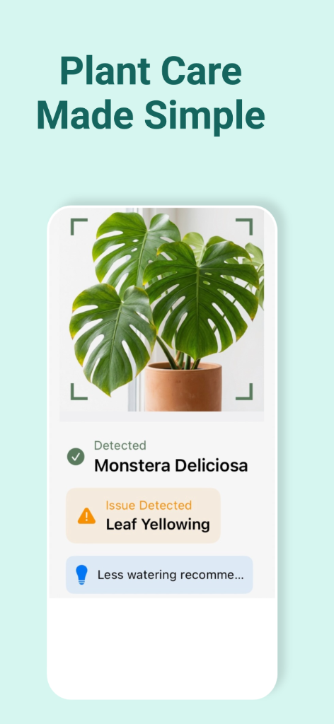 Identify plants from a photo, detect health issues, organize your collection, and stay on top of watering reminders — all powered by AI.